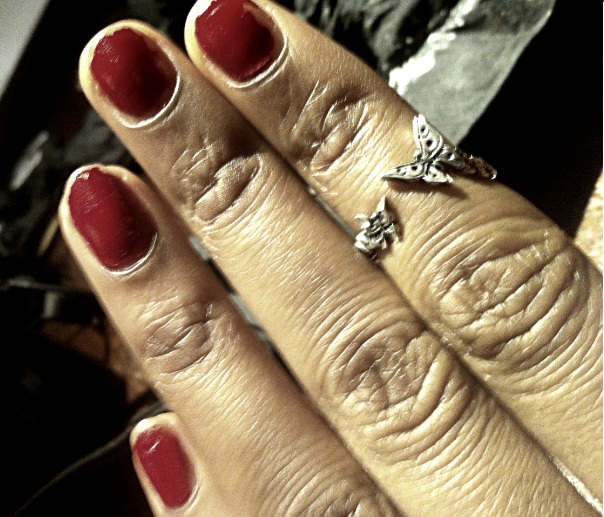 Still feeling the love even though valentines day is OVER.. Forgot to put a picture up of my freshly painted nails, so here's one to make up for it. Let me just add, saw this cute finger ring in Topshop. Had to buy it! There were so many patterns, designs and colours. Be sure to check some out.